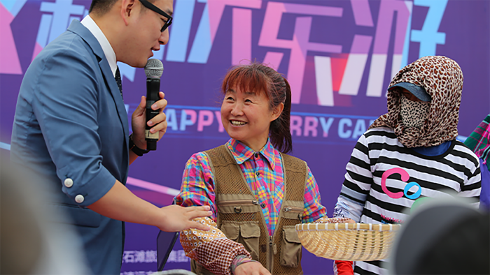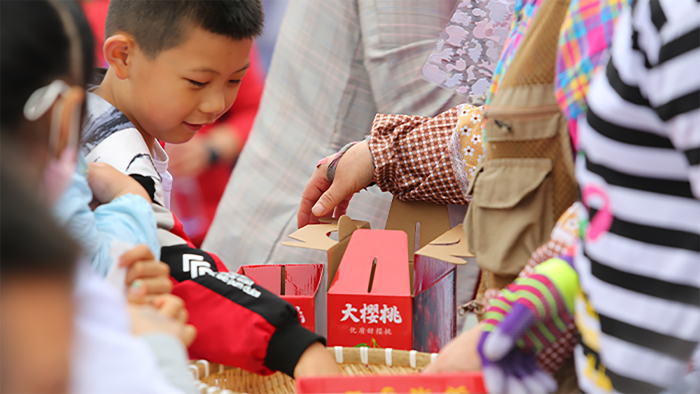 樱桃市集上,红灯、美早、佳红等樱桃个头十足,爽口脆甜,市民游客现场使用云闪付购买更享受超值惠民价,云闪付还开通了线上樱桃销售,为广大樱桃种植户打开新的销售渠道,为百姓打造更安 全、更优质、更精准、更流畅的移动支付体验。 超多维C、超有能量的云闪付樱桃补给站,为参与者加油助力!活动现场的樱桃趣味贴纸区,樱桃人偶与游客欢乐互动,吸引活动参与者纷纷打卡拍照。